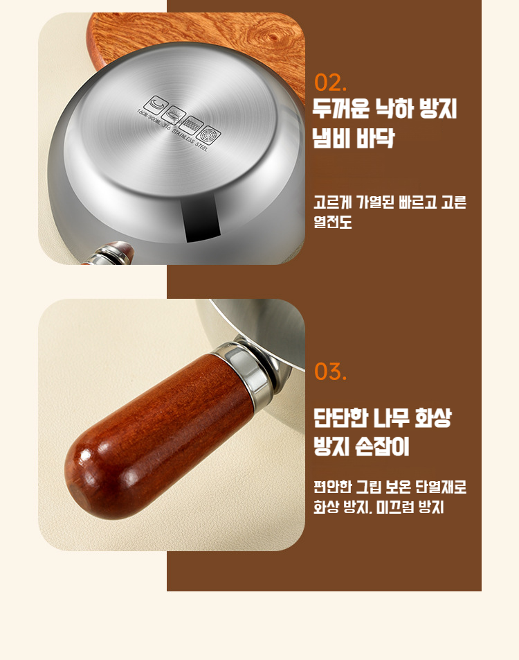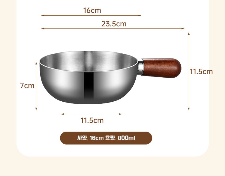 호두나무 무코팅 두꺼운 작은 우유냄비 1인용 아침냄비 통통 작은 프라이팬 라면냄비