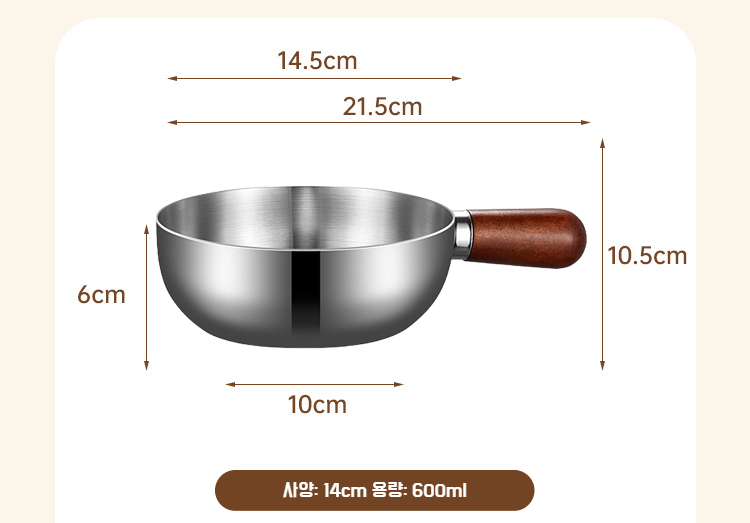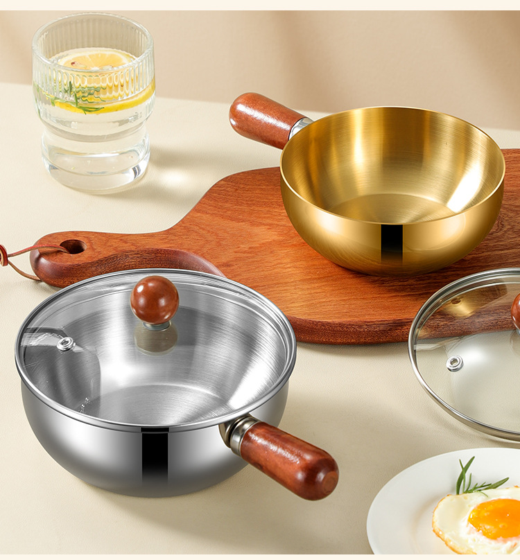 호두나무 무코팅 두꺼운 작은 우유냄비 1인용 아침냄비 통통 작은 프라이팬 라면냄비